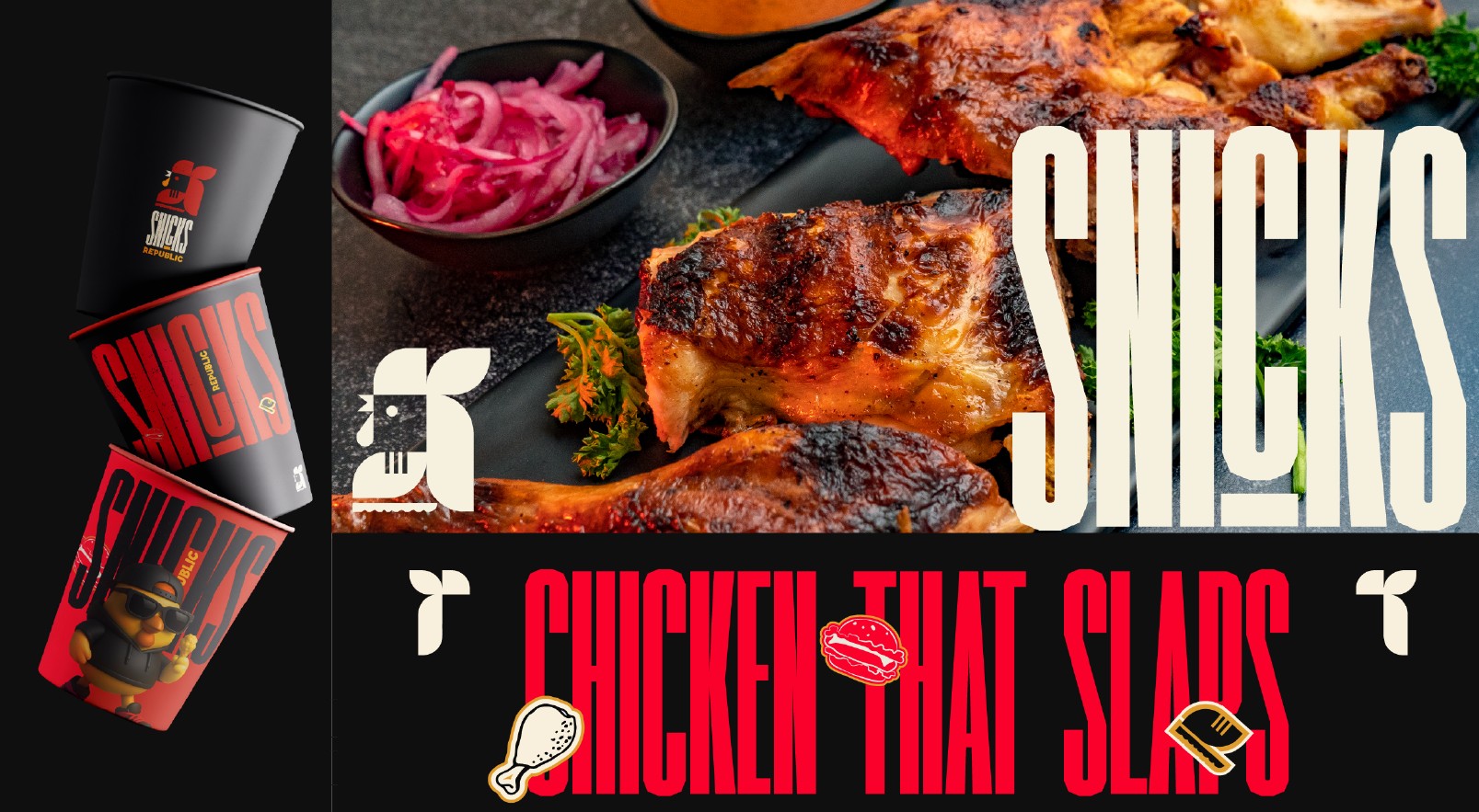 在一個(gè)食品品牌往往過度包裝或缺乏個(gè)性的市場中,Snicks 以真實(shí)和態(tài)度脫穎而出。這不僅關(guān)乎快餐,更是一場成熟的文化表達(dá)。從標(biāo)志到炸雞桶,從吉祥物到那句響亮的口號“Chicken tha Slaps”——每一處細(xì)節(jié)都致力于構(gòu)建一個(gè)自信十足、個(gè)性鮮明的品牌世界。Snicks 代表的是街頭炸雞的頂級形態(tài):快速、上癮、有態(tài)度,既屬于街頭,也屬于餐桌。