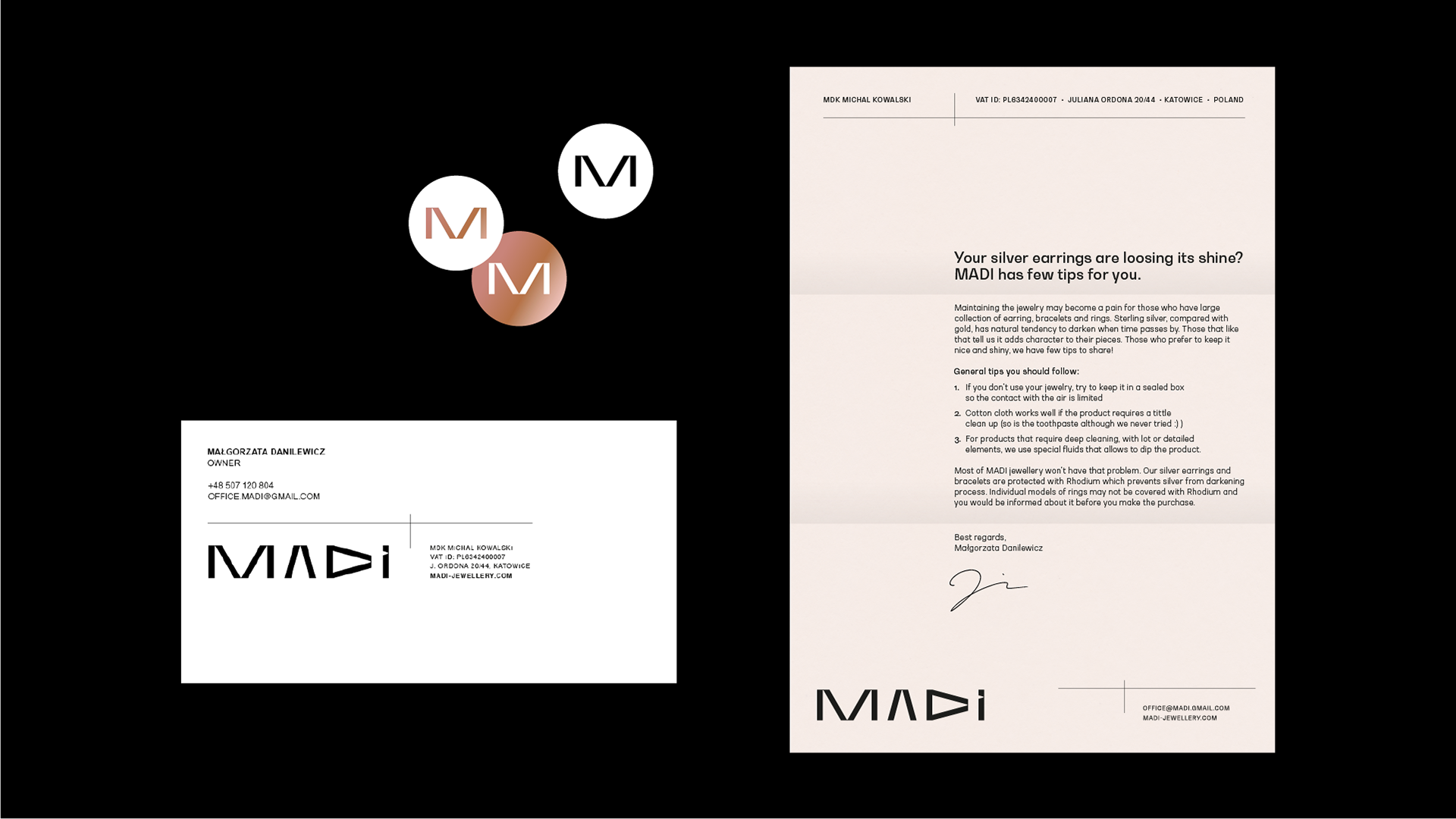 MADI珠寶品牌標(biāo)志設(shè)計(jì):MADI是由第三代金匠打造,設(shè)計(jì),生產(chǎn)和銷(xiāo)售珠寶首飾。該公司一直強(qiáng)調(diào)家族企業(yè)和生成珠寶的特點(diǎn)。公司致力于尋找材料質(zhì)量、設(shè)計(jì)、舒適、傳承的完美契合點(diǎn)。