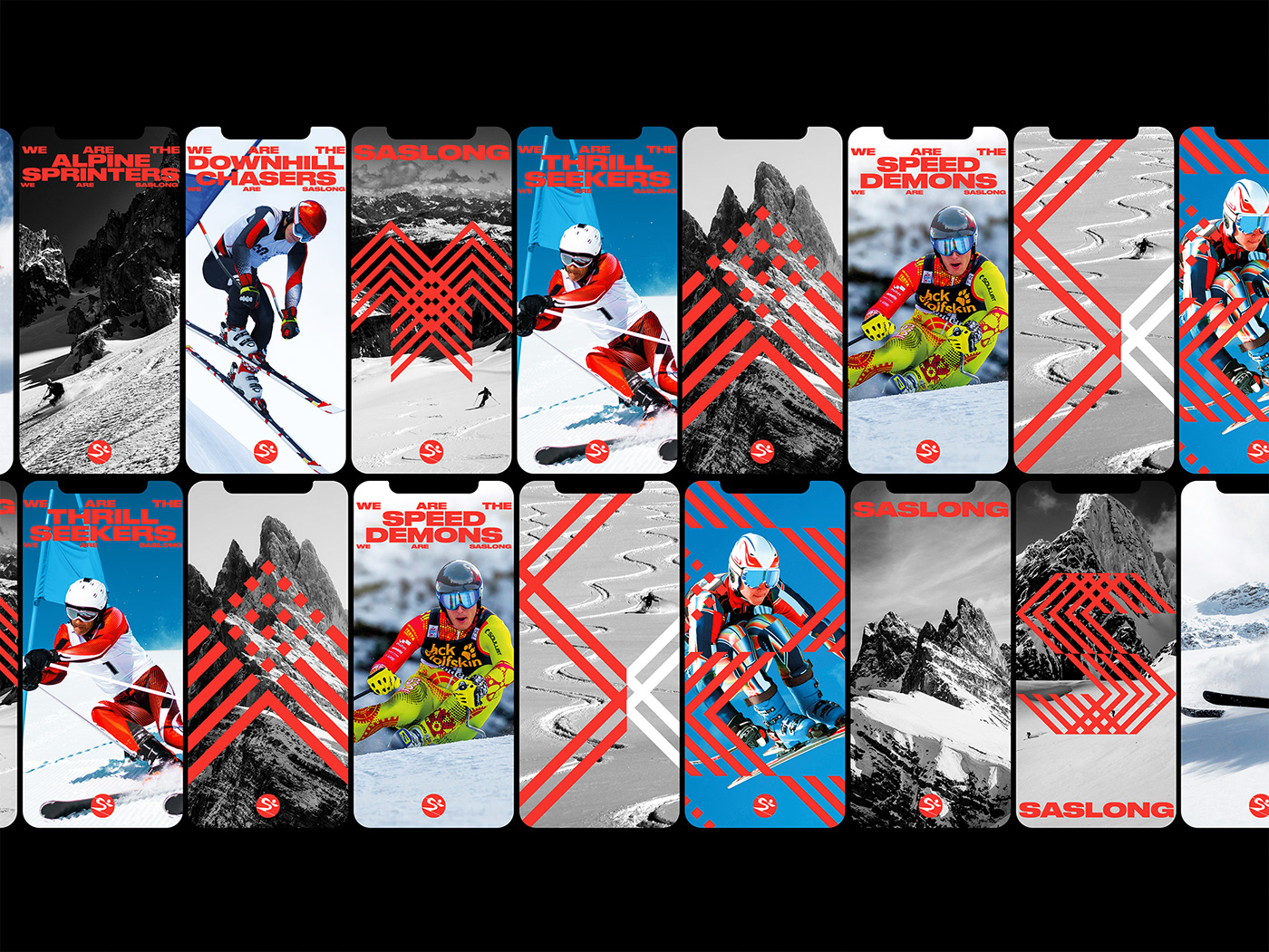 我們與Saslong合作開發(fā)了一個品牌標(biāo)識和品牌活動,捕捉并表達(dá)了世界杯球場的能量以及球迷和球員的個性,向?qū)で蟠碳ふ?、下坡追逐者、高山短跑運動員、速度惡魔和雪地賽車手致敬。