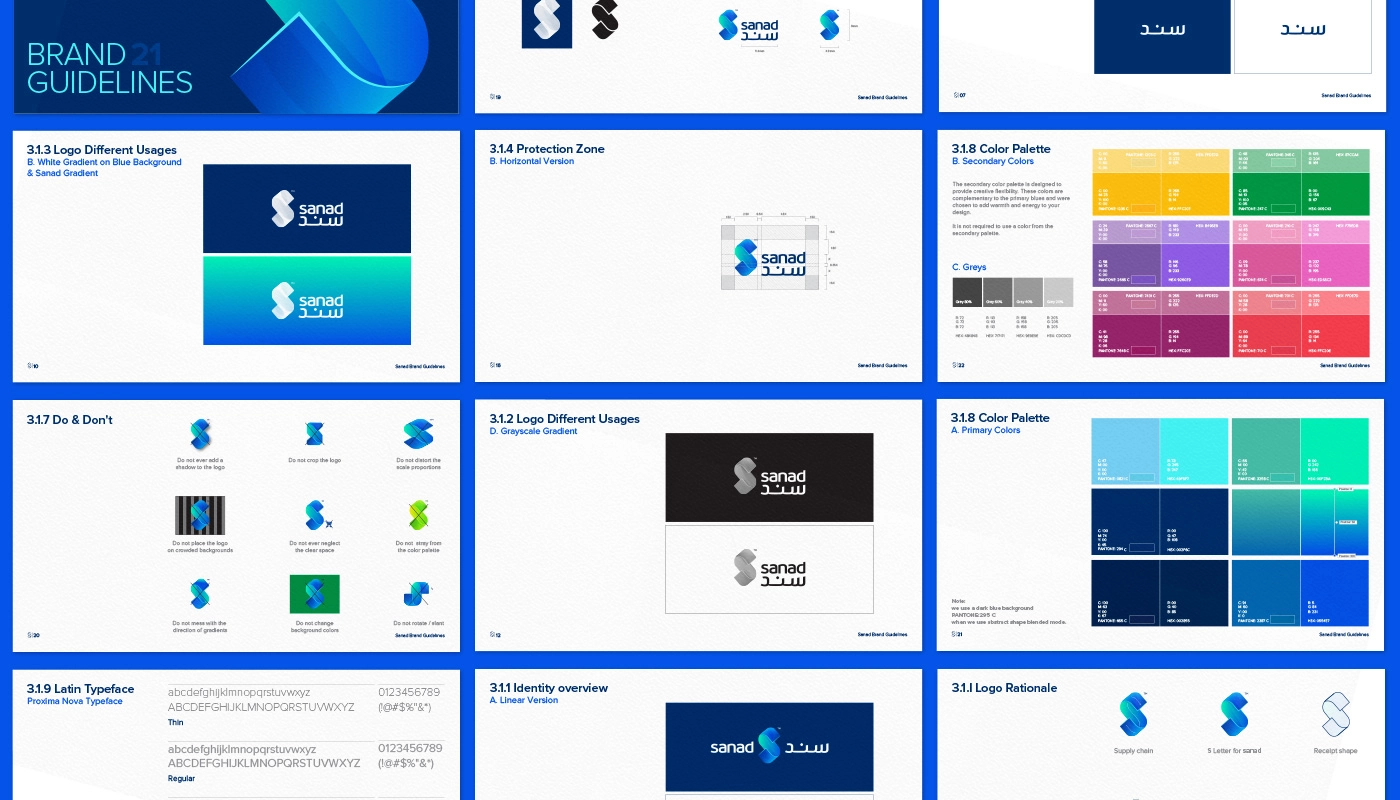 歐米布蘭德,該機(jī)構(gòu)為Sanad開發(fā)了一個富有創(chuàng)意和有意義的VI設(shè)計(jì)和徽標(biāo)概念,其中包含公司商業(yè)模式的關(guān)鍵元素。該標(biāo)志最突出的特征是字母S,它旨在代表連接企業(yè)與快速消費(fèi)品制造商和批發(fā)商的供應(yīng)鏈。同時(shí),S還暗示了沙特阿拉伯貨幣SAR,為設(shè)計(jì)增添了一絲當(dāng)?shù)靥厣?
